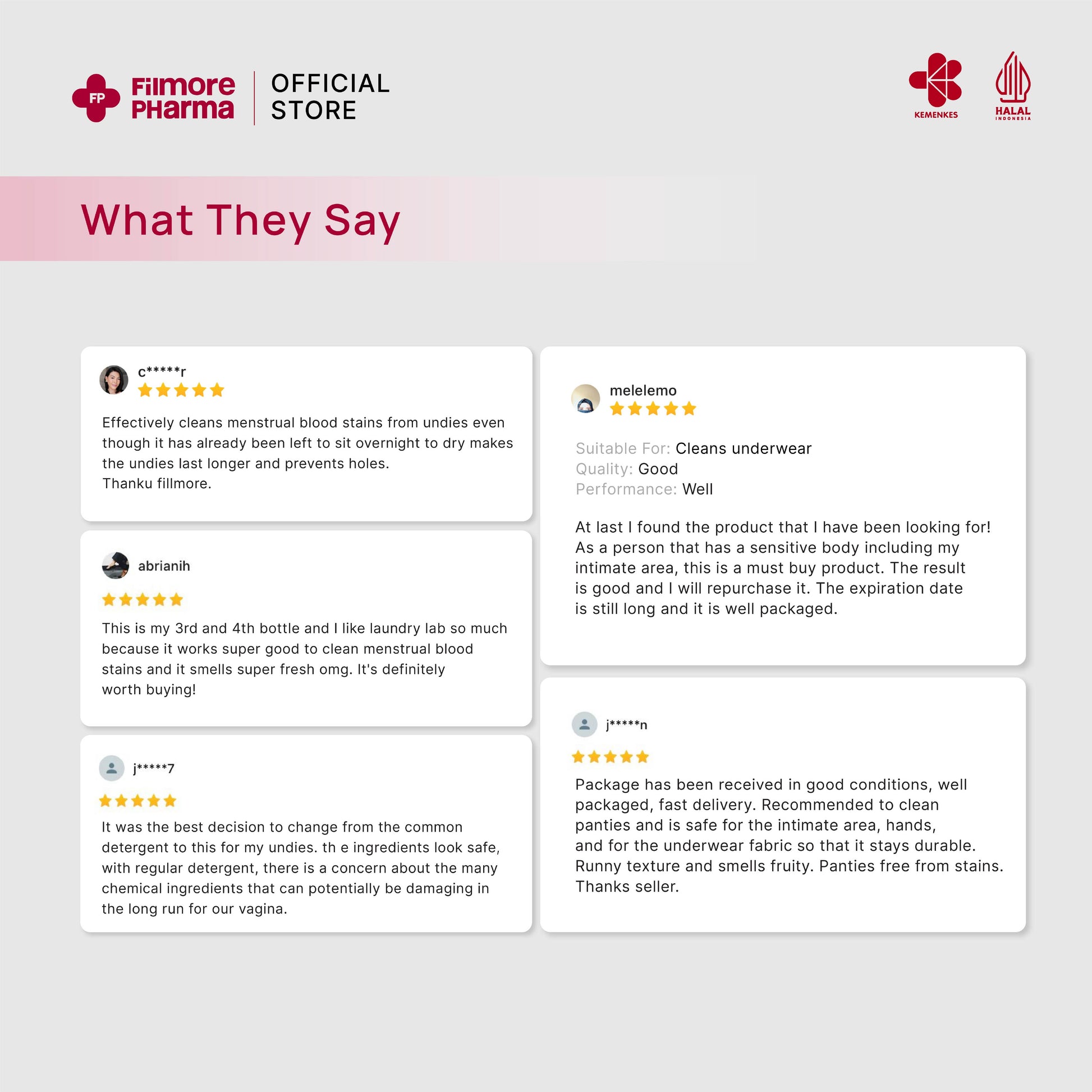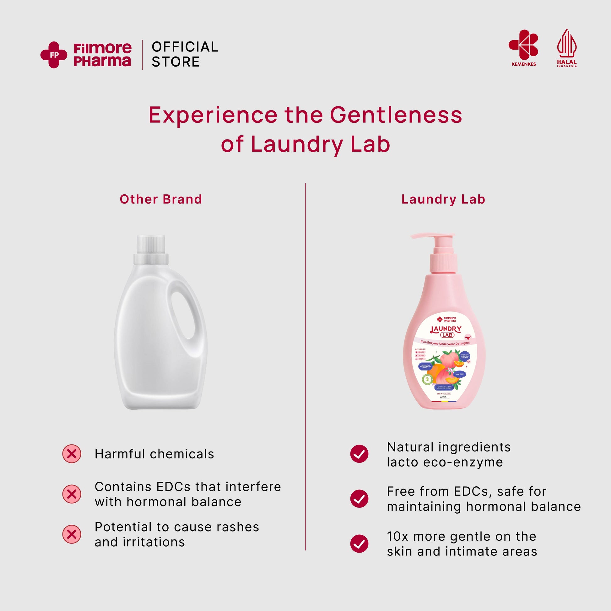 FILMORE Laundry Lab Underwear Detergent is the first detergent specifically formulated for underwear, lingerie, and intimate wear. It contains no soap with high pH, and is free from Phthalates, NPEs, Parabens, PFAS, Triclosan, Formaldehyde, and other chemicals known to disrupt hormones and contribute to fertility issues such as PCOS, Endometriosis, and Thyroid disorders.