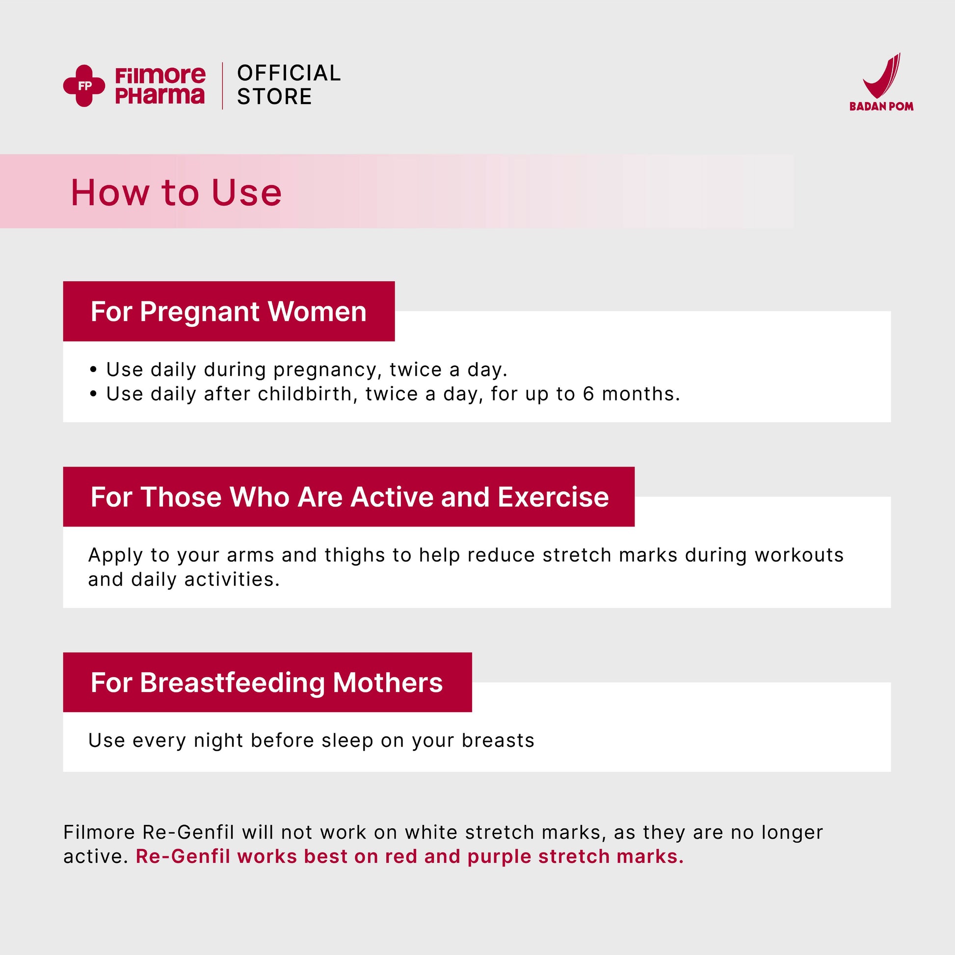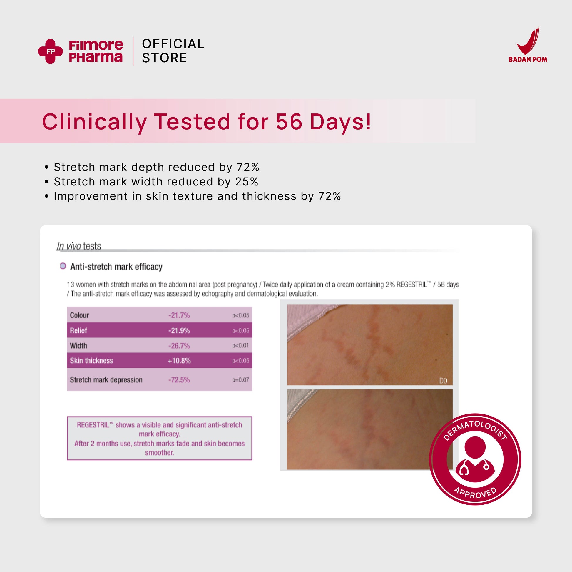 Regenfil Stretch Mark Cream is a stretch mark cream that prevents the formation of stretch marks and helps fade red and purplish stretch marks and scars quickly with the REGESTRIL™ patented formula which was first used in Indonesia.